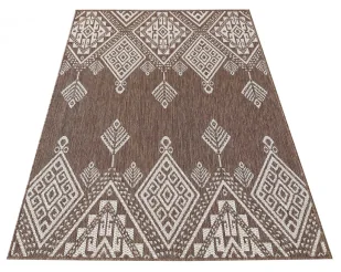 Czym się wyróżnia? Dywan ten jest spektakularnym połączeniem szyku, elegancji, nutki modernizmu i pełnego wolności stylu boho. Genialnie sprawdzi się zdobiąc Twój salon, sypialnię, przedpokój lub kuchnię. Bez obaw możesz go także położyć na tarasie lub balkonie. Pozwalają na to wysokojakościowe materiały, z jakich powstał. Dzięki nim nie przyciąga kurzu i brudu, a także jest odporny na odbarwienia i odkształcenia.