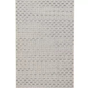 Modny dywan w geometryczny wzór w odcieniach kremowych i niebieskich splotów. Przeznaczony do użytku zarówno wewnętrznego, jak i zewnętrzego. Sprawdzi się w salonie,sypialni a nawet w przedpokoju czy na tarasie. Wykonany z tworzywa polipropylenowego z efektem włókien sizalu. Jest wytrzymały, łatwy w czyszczeniu oraz dobrze utrzymuje ciepło.