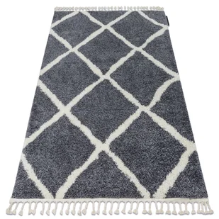 Dywan BERBER CROSS B5950 szary / biały Frędzle berberyjski marokański shaggy 80x150 cm