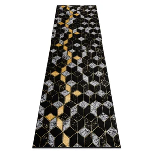 Dywan, Chodnik GLOSS nowoczesny 400B 86 stylowy, glamour, art deco, 3D geometryczny czarny / złoty 60x250 cm