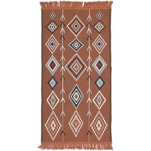 Wprowadź do swojego wnętrza odrobinę kultury i charakteru dzięki dywanowi Kilim Nord Aztecki. Ten dwustronny dywan kilim z geometrycznym wzorem inspirowanym motywami azteckimi to idealne połączenie tradycji i nowoczesności. Frędzle z dwóch stron oraz starannie obszyte krawędzie dodają mu lekkości i dekoracyjnego uroku. Wykonany z mieszanki bawełny, poliestru i akrylu, dywan jest miły w dotyku, lekki, trwały i łatwy do prania w 30°C. Doskonale sprawdza się w miejscach o dużym natężeniu ruchu, takich jak korytarze, kuchnie, łazienki, a także jako dywan do sypialni czy dekoracyjna narzuta.