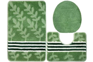 Komplet 3-częściowy Łazienkowy Natel Green Zielony Listki Paski-KOMPLET