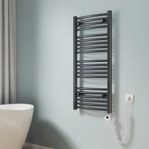 EMKE Grzejnik łazienkowy zakrzywiony Suszarka do ręczników Z elementem grzejnym sterowanym czasowo Zestaw termostatów, grzejnik elektryczny (antracyt 100x50cm)