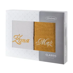 Komplet ręczników w pudełku 2 szt 50x90 Mąż Żona srebrny musztardowy