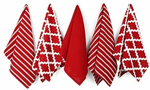 Penguin Home ścierka do naczyń ze 100% bawełny, zestaw 5 szt. miękka wytrzymała i bardzo chłonna stylowy czerwony wzór z wieloma wzorami można prać w pralce 65 x 45 cm