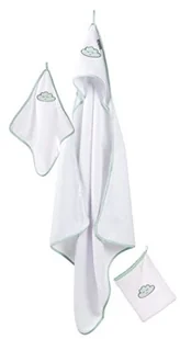 Zestaw ręczników roba "Happy Cloud" dla niemowląt - 3-częściowy zestaw kapturków dla dzieci - Ręcznik + ścierka - Bawełna frotte - Motyw chmur - Biały/Mięta zielona