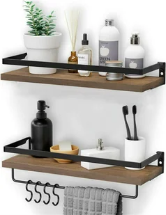 Szukasz wielofunkcyjnej półki ściennej? Rustykalne drewniane półki ścienne to najlepszy wybór dla Ciebie! Efektywnie wykorzystaj pustą ścianę i stwórz rozwiązanie do przechowywania bez zajmowania cennej przestrzeni. Rustykalne drewniane półki pasują do niemal każdego wystroju i są idealne do kuchni, kredensu, jadalni, salonu, sypialni, łazienki lub biura. Wszechstronne zastosowanie -dzięki zdejmowanemu wieszakowi na ręczniki sam decydujesz, jak je zamontować, czy bezpośrednio na półce, czy na ścianie poniżej, możesz także zawiesić pływające półki w dowolnej pozycji Najlepszy wybór -w kuchni na półce ściennej można przechowywać butelki z przyprawami, a na wieszaku na ręczniki powiesić ręczniki lub haczyki kuchenne. W łazience, umieść kosmetyki takie jak szampon, odżywka, żel pod prysznic itp. na półkach i powieś ręcznik pod spodem.