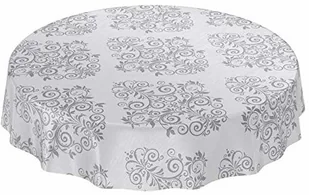ANRO Obrus ceratowy, zmywalny, motyw pnączy, barokowy, szary, okrągły, 140 cm