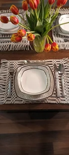 Komplet składa się z 4 podkładek pod talerze i bieżnika na stół lub komodę. Jest wykonany ze sznurka bawełnianego 3mm metodą makramy. Sznurek jest w 100% naturalny i trwały oraz przyjazny dla środowisk ...