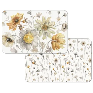 Polipropylenowa podkładka na stół CALA HOME - FIELDS OF GOLD (Złota Łąka ), ozdobiona dwoma wzorami z łąkowymi kwiatami. Podkładka na stół Cala Home wykonana jest z elastycznego PCW - dwustronnie zadrukowanego. Podkladki świetnie zabezpieczają stół przed zarysowaniem. Aby utrzymać podkładkę w czystości wystarczy opłukać ją pod letnią wodą. Wymiary: 43 cm x 28.