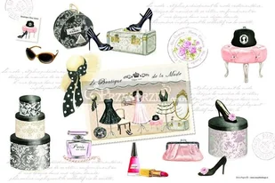 Cienka polipropylenowa podkładka na stół z kolekcji Romantic, w kolorze białym, ozdobiona motywami strojów i modnych dodatków. N a uwagę zasługuje wysoka jakość tego produktu - włoskiej firmy R2S Nuova.