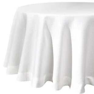 Elegancki okrągły obrus ELLEN w drobne srebrne groszki to dodatek, który nada nakryciu stołu, odświętnego charakteru. Biały obrus pokryty jest delikatnie połyskującym wzorem, a podwójna listwa tkaniny zdobiąca jego brzegi, dodaje nakryciu stołu wyjątkowego stylu.