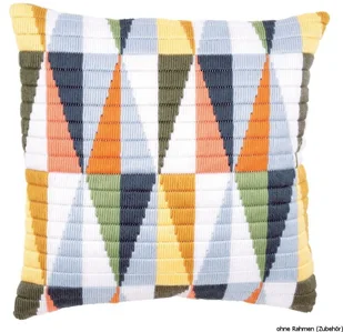 Zestaw do długiego ściegu, Kanwa z nadrukiem: 100% bawełna, gruba nić: 100%. poliakryl , 34 dziurki/10 cm - 8,5 ściegu/cal, instrukcja w czterech/ośmiu językach, wzór w kratkę, igła, zdjęcie na froncie, Dimensions: ok. 40 x 40 cm / 16" x 16"; Podkładka nie wchodzi w skład zestawu. Można go uszyć samodzielnie lub osobno.