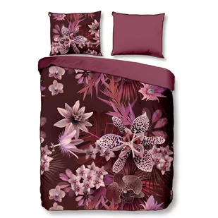Bordowa pościel jednoosobowa z bawełny organicznej Descanso Orchid, 140x200 cm