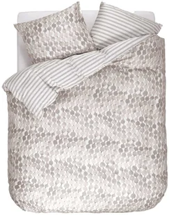 Oferowana przez Esprit elegancka pościel przykuwa uwagę swoim unikatowym i bardzo oryginalnym designem, który w sposób nietuzinkowy połączył z sobą inspirowane naturą kamyki o nieregularnych, ale opływowych i niemal miękkich kształtach, z dyscypliną i ładem regularnie ułożonych pasów. Dwie odmienne odsłony tej gustownej pościeli dwustronnej to zaproszenie do dekoratorskiego eksperymentowania z różnymi stylami w sypialni.