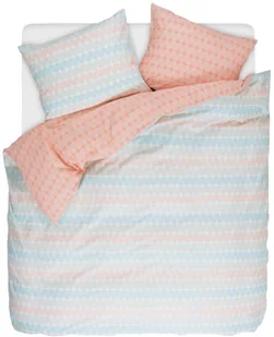 Na tę bardzo urokliwą pościel dwustronną, składają się poszewki dekoracyjne, zdobione z jednej strony pastelowymi i stonowanymi motywami w kolorze łososiowym, niebieskim i beżowym, z drugiej dominuje intensywniejsza koralowa barwa. Komplet pościeli bawełnianej tworzą: 2 poszewki na poduszki oraz poszewka na kołdrę.
