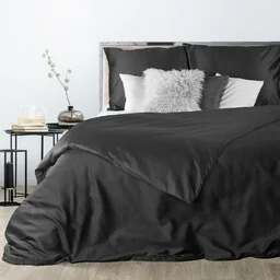 Pościel satynowa 180x200 Nova 3 czarna jednobarwna Nova Eurofirany wykonana z najwyższej jakości makosatyny upiększy Twoją sypialnię. Wykończona z niezwykłą precyzją oraz utrzymana w wyrazistych i głębokich odcieniach spełni oczekiwania najbardziej wymagających użytkowników. Połączenie elegancji i prostoty, dla tych, którzy cenią sobie wysoką jakość satyny. Zestaw jest również świetną propozycją prezentową, na okazję każdego rodzaju. Do pościeli mogą Państwo jeszcze dopasować poszewki z satyny bawełnianej jednobarwne 40x40 cm.