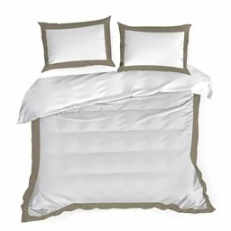 Eurofirany Pościel satynowa 220x200 Laura biała beżowa z ozdobną kantą