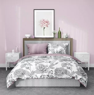 Pościel satyna elegant 001 160x200 + dwie poszewki 70x80 to tekstylia pościelowe fioletowe, które z jednej strony prezentuje jednolite tło, a z drugiej dekoracyjny wzór kwiatów oraz motyli utrzymany w neutralnej kolorystyce bieli, szarości i czerni. Pościel satynowa elegant wyróżnia się wytrzymałością oraz doskonałą kondycją nawet po wielu latach użytkowania. Nasycona kolorystyka i odporność na odkształcenie zapewniają łatwość pielęgnacji pościeli satynowej – także pranej w wysokich temperatura