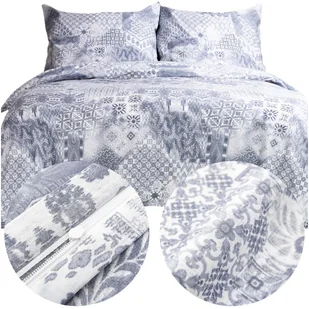 Komplet pościeli 200x220 100% NATURALNA BAWEŁNA Pava niebieski ornament