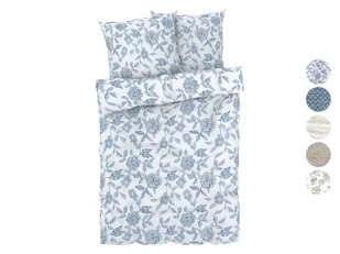Kwiaty niebiesko/białe, Kwiatowy niebieski, Linie, Wzór brązowo/biały, Ornament niebiesko/biało/beżowy Pościel dwustronna: Kwiatowy niebieski Gramatura: 125 g/m² Gęstość splotu: 205 Wskazówki dotyczące pielęgnacji: prać w temperaturze maks.
