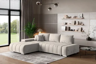 Narożnik ALESE L-S oferuje praktyczny schowek na pościel, oszczędzając miejsce w szafie lub komodzie. Ponadto schowek pomaga utrzymać porządek w salonie, zapewniając elegancki i uporządkowany wygląd przestrzeni. Dzięki funkcji spania narożnik staje się wszechstronnym meblem, który nie tylko zapewnia wygodne miejsce do siedzenia, ale także wygodne łóżko dla gości. To praktyczne rozwiązanie dla wszystkich, którzy szukają wielofunkcyjnego mebla dostosowującego się do zmieniających się potrzeb przestrzeni życiowej. Narożnik ALESE L-S jest w modnych kolorach, dzięki czemu możesz dostosować go do swoich indywidualnych preferencji i wystroju wnętrza.