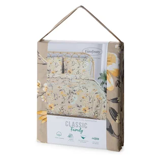 Eurofirany Pościel bawełniana 160x200 Emy beżowa ciemna kolorowa kwiaty BAW25