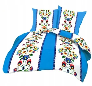 pościel bawełna lux 200x220 + 2 poszewka B 257-8 łowicz niebieski pas