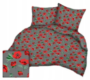 pościel bawełna lux 200x220 + 2 poszewka B 308-1 urocze maki czerwono grafi