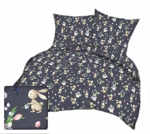 pościel bawełna lux 220x240 + 2 poszewka B 548 zając tulipan graf Wielkanoc