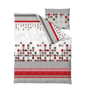 Pościel bawełniana 140x200 Merino szara czerwona biała ornamenty paski z jedną poszewką Gold Zaratex