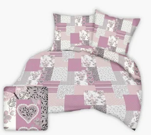 Pościel bawełniana 160x200 różowa patchwork serca motyle kwiaty