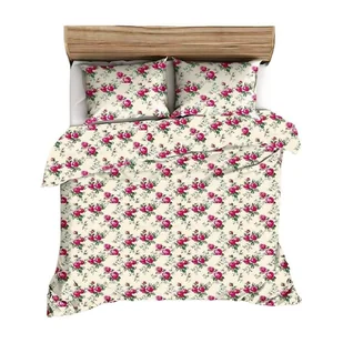 Pościel flanelowa 140x200 429N kremowa różowa kwiaty Flanela Komfort