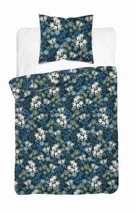 Pościel satynowa 140x200 granatowa w białe kwiaty – Satin Stories