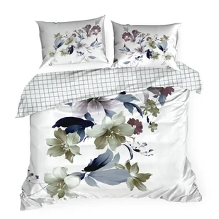 Pościel satynowa 220x200 Sofia biała kolorowa kwiaty Premium