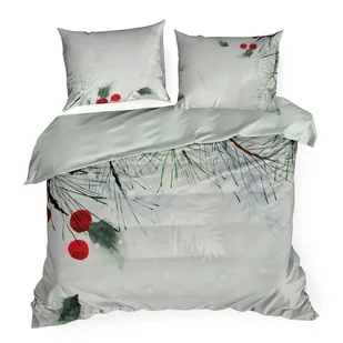 Pościel świąteczna 220x200 Robin szara zielona stroik z mikrowłókna Św 24