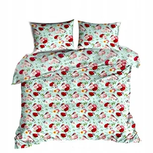 pościel z bawełny płaskiej 200x200 + 2 poszewki B 77-1 ptaszak niebieski