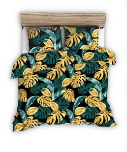 Zachowuje trwałość i świeżość przez długi czas. Prezentowany komplet zachwyca niezwykle popularnym wzorem egzotycznych liści na czarnym tle. Całość zwraca uwagę, nadając niepowtarzalny charakter każdemu wnętrzu. Poszwa na kołdrę i poszewki na poduszki zapinane są na praktyczny ekspres. W skład zestawu wchodzą: