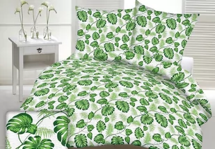 Zachowuje trwałość i świeżość przez długi czas. Niezwykły komplet pościeli z kory w modnym wzorze żywozielonych, egzotycznych liści na jasnym tle. Dzięki tej pościeli z pewnością poczujesz powiew tropików w Twojej sypialni.