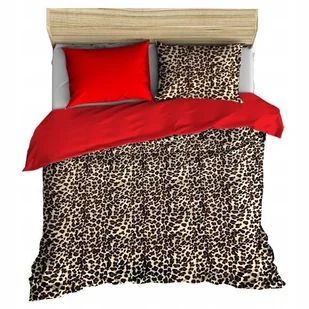 pościel z polaru 160x220 + 2 poszewki P 309-8 DUO panterka brąz / czerwony