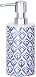 Wyjątkowy dodatek wystroju wnętrza pomoże stworzyć w nim niepowtarzalny klimat. Ceramiczny pojemnik na mydło w płynie to drobiazg w dobrym guście, który ozdobi wnętrze łazienki. Pojemnik ma wymiary 8,5x7x18 cm. Pomieści ok. 360 ml mydła. Wykonany jest z ceramiki o dużej twardości. Ciężar tego materiału pozwoli zachować stabilność nawet pustemu dozownikowi. Przyciąga uwagę subtelny, stylizowany roślinny ornament w kolorze niebieskim, zyskującym żywności w połączeniu z białym tłem. Nieco staroświecki design sprawia, że pojemnik świetnie będzie pasować do łazienki w stylu rustykalnym lub wiejskim. Dobrze odnajdzie się też we wnętrzach urządzonych w śródziemnomorskim stylu. Ceramiczny pojemnik na mydło w płynie Lorca pasować będzie do innych przedmiotów z serii.
