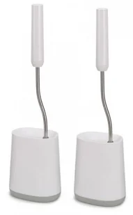 Zestaw 2 szczotek do toalety, Joseph Joseph, Flex, 70523 Cechy produktu: nowoczesna szczotka do toalety ułatwiająca jej czyszczenie, wykonana z tworzywa sztucznego, wyposażona w rączkę ze stali nierdzewnej oraz polimerową głowicę, głowica w kształcie litery ,,D" - wykonana z materiału nieabsorbującego wody - szybciej obsycha, zróżnicowanie w długości włosie nie zbiera zanieczyszczeń, głowica jest elastyczna - dokładniej czyści, nawet pod brzegiem sedesu, smukła forma oszczędzająca miejsce w łazience, szczotka jest łatwa do czyszczenia i higieniczna (myć wodą z mydłem).