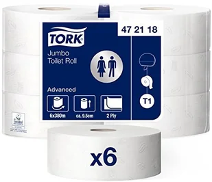 Tork 472118 papier toaletowy Jumbo we Advanced wysokiej jakości zapewnia system Tork T1 Jumbo uchwyt na papier toaletowy/uchwyt na papier toaletowy 2-warstwowe w kolorze białym/6 X arkuszy 472118