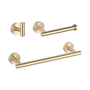 Ten zestaw akcesoriów łazienkowych w kolorze szczotkowanego złota doda Twojej łazience odrobinę luksusu i elegancji. Dzięki szczotkowanemu złotemu wykończeniu, te akcesoria idealnie sprawdzą się w przypadku osób poszukujących odrobiny stylu i wyrafinowania. Szczotkowane złoto nie tylko dodaje elegancji, ale jest również trwałe i łatwe w utrzymaniu, zapewniając lśniące i eleganckie wykończenie. Zestaw zawiera 30-centymetrowy wieszak na ręczniki, wieszak na ubrania i uchwyt na papier toaletowy – wszystkie o nowoczesnym i funkcjonalnym designie.