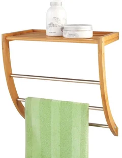 Wieszak łazienkowy pomoże zorganizować łazienkę w mądry sposób. Nie zajmuje wiele miejsca a oferuje maksymalne wykorzystanie przestrzeni. Świetnie sprawdzi się także w wąskich i małych pomieszczeniach. Trzy drążki służą do wieszania ręczników oraz suszenia bielizny. Dodatkowa półka u góry sprawdzi się do ustawiania kosmetyków oraz akcesoriów do kąpieli. Wykonany z wytrzymałego włókna bambusowego, wieszaki z chromowanej stali.