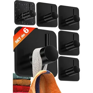 Zestaw 6 samoprzylepnych haczyków – Wieszak na ręczniki łazienkowe bez wiercenia, haczyki na ręczniki o dużej nośności, funkcjonalne uchwyty na ręczniki w łazience; wyrafinowany design.