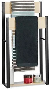 Szukasz atrakcyjnego wizualnie i funkcjonalnego wieszaka na ręczniki do swojej łazienki? W takim razie szykowny wieszak na ręczniki w kształcie litery U jest właśnie dla Ciebie. Susz ręczniki wyjątkowo szybko na dwóch półkach! Ten wieszak na ręczniki zapewnia optymalną cyrkulację powietrza i umożliwia szybkie suszenie tekstyliów bez wilgotnych, stęchłych zapachów. Szeroka podstawa oferuje również możliwość przechowywania przyborów łazienkowych, takich jak kosmetyki i szampony. Stojący wieszak na ręczniki w szczegółach - Wymiary całkowite wys. x szer. x gł. : ok. 86 x 45 x 19 cm - Wysokość półek: