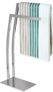 Szczegóły wieszaka na ręczniki ze stali nierdzewnej WIMEDO - Z 2 zakrzywionymi prętami - Całkowita wysokość x szerokość x głębokość: ok. 84 x 32 x 20 cm - Waga: ok. 3,0 kg - Materiał: stal nierdzewna z miedzianym, srebrnym wykończeniem - Kwadratowa podstawa o wymiarach wys. x szer. x gł. : ok. 1 x 32 x 20 cm Wieszak na ręczniki z 2 wieszakami na ręczniki- Z 2 ramionami na różnych wysokościach - Odstęp między prętami: