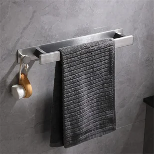 Montaż bez wiercenia: Wystarczy odkleić samoprzylepną folię z tyłu wieszaka na ręczniki i przykleić go do gładkiej powierzchni ściany.