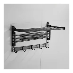 Składany obrotowy wieszak na ręczniki bez wiercenia, półka łazienkowa na ręczniki czarna 50×25,5×29 cm